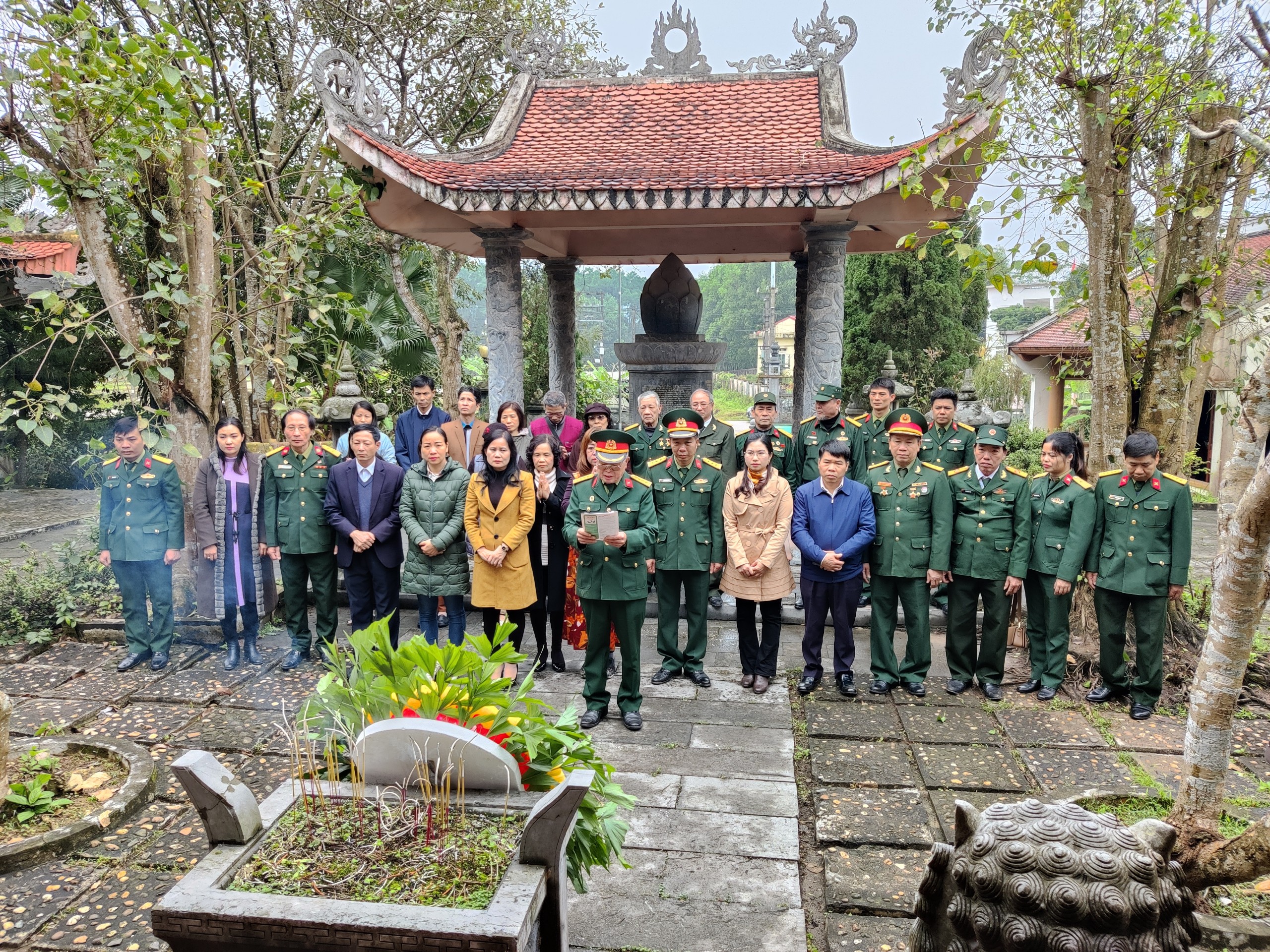 Đoàn Lãnh đạo, cán bộ Trung đoàn 88, Sư đoàn 308 và Ban Liên lạc Hội Cựu chiến binh Trung đoàn 88 Tu Vũ đến dâng hương tại Nghĩa trang liệt sỹ xã Tân Cương và Đền thờ các Anh hùng liệt sỹ Khu lưu niệm Trung đoàn 88 Tu Vũ