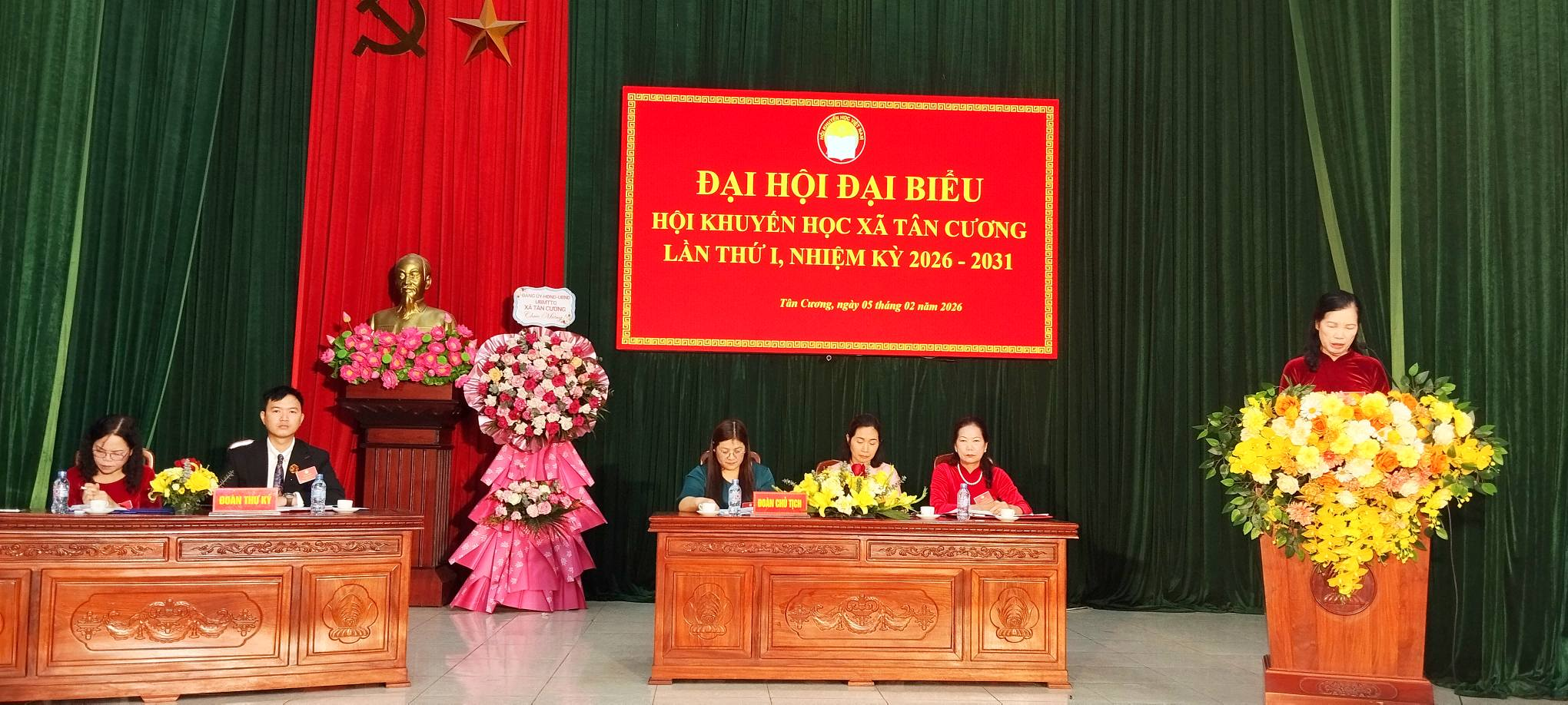 Sáng 5/2/2026, Hội Khuyến học xã Tân Cương tổ chức Đại hội đại biểu lần thứ I, nhiệm kỳ 2025-2030.Dự và chỉ đạo Đại hội có đồng chí Đỗ Thị Thìn, Chủ tịch Hội khuyến học tỉnh Thái Nguyên; đồng chí Nguyễn Quang Thuấn, Phó chủ tịch Thường trực Hội khuyến học tỉnh Thái Nguyên. Về phía xã Tân Cương có đồng chí Nguyễn Công Việt, Phó Bí thư Đảng uỷ, Chủ tịch UBND xã; đồng chí Đồng Đức Phương– Ủy viên BTV Đảng uỷ, Phó Chủ tịch UBND xã; các đồng chí Ủy viên Ban Thường vụ Đảng ủy; lãnh đạo HĐND, UBND xã; các Đại biểu đại diện cho các Phòng ban chuyên môn của UBND, các tổ chức CT-XH, Trạm y tế, Công an, Ban chỉ huy Quân sự, Hội doanh nghiệp xã; các trường học; Chi hội Khuyến học, các Dòng họ khuyến học, cùng 103 đại biểu chính thức đại diện cho cán bộ, hội viên trên địa bàn xã Tân Cương.