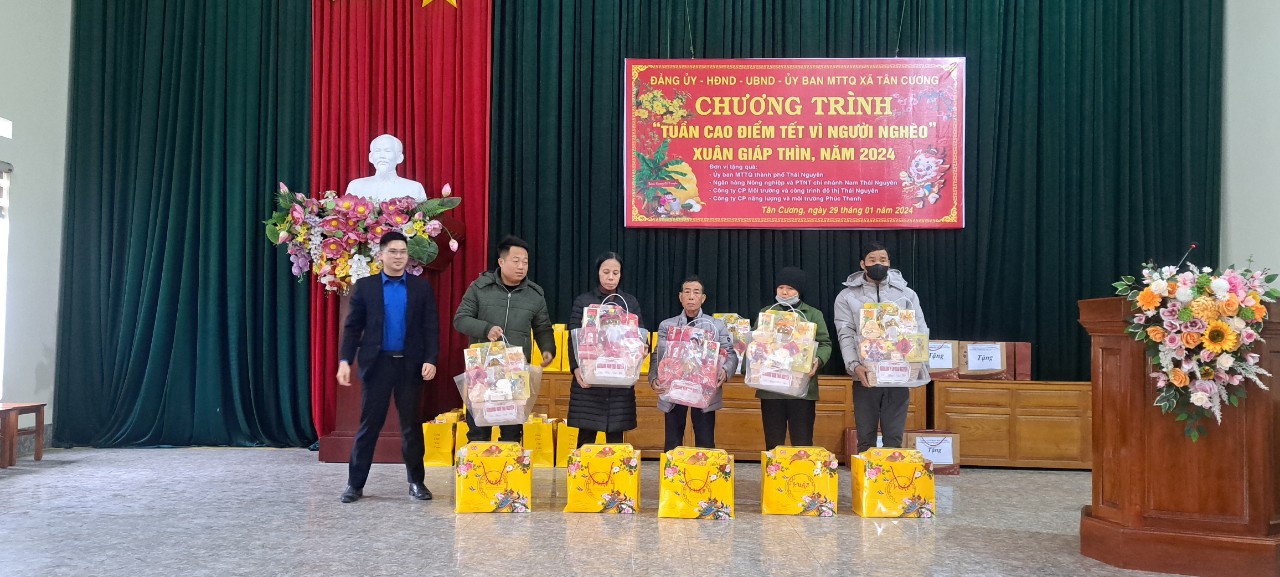 Ngày 29 tháng 01 năm 2024, Đảng ủy - HĐND - UBND - UB MTTQ xã Tân Cương đã tổ chức thành công Chương trình “Tuần cao điểm Tết vì người nghèo” xuân Giáp Thìn, năm 2024